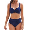 CUPSHE Women's Bikini Set Push Up Crossover High Waist Tummy Control Ruffle Bikini Heart Neck Preformed Cups Swimwear Two Piece Swimsuit, navy