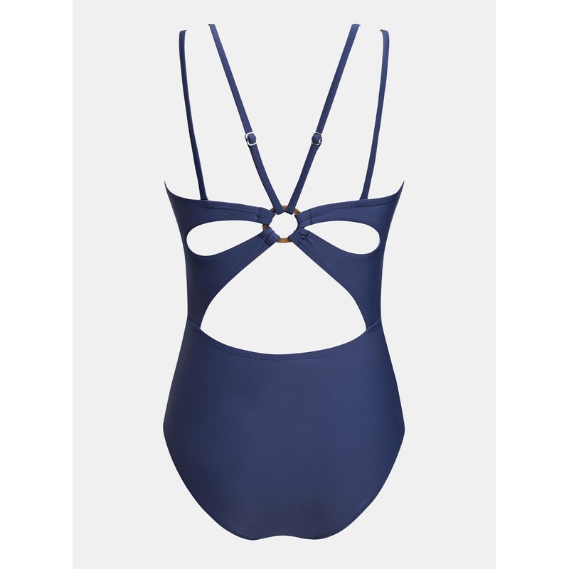 CUPSHE Women's One Piece Swimsuit V Neck Tummy Control Double Adjustable Straps Back Cutout O-Ring, M Indigo Blue