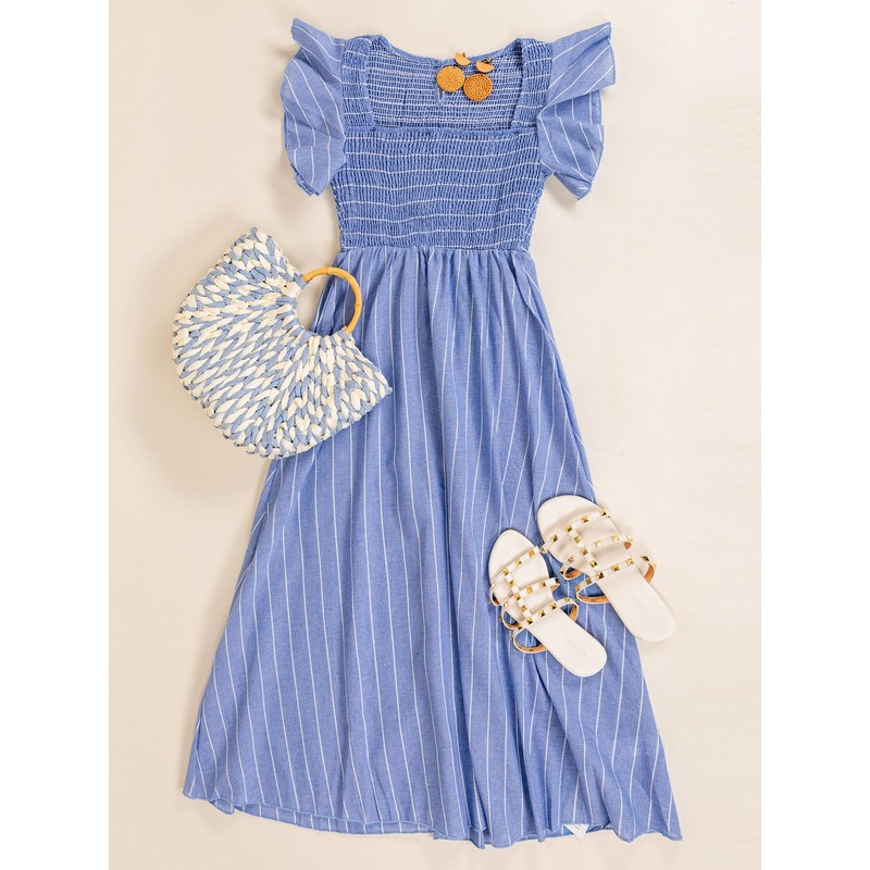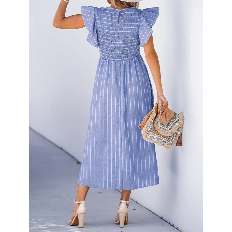 - [Unique Design]: The pinstriped Smocked Maxi Dress is the perfect blend of chic and comfort, making it a must-have for any summer wardrobe. Featuring for square neck dress, striped dress for women, cap sleeve dress for women,smocked dresses for women 2024,ruffled dress for women, the women's formal dresses is the best choice for summer dresses for women 2024.
