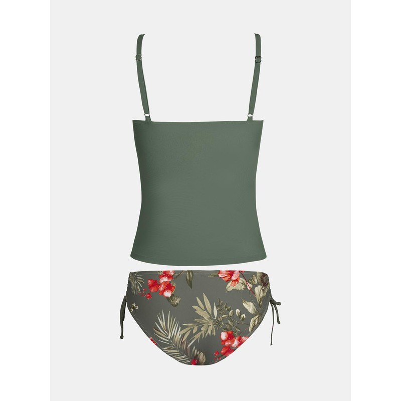 - Design: This Tankini Sets highlighted by a Scoop Neck and Ruched Accents for a Flattering Contour. Mid Rise Bottoms with Side Drawstrings add a Touch of Charm. About Cup Style: With Removable Soft Cups.