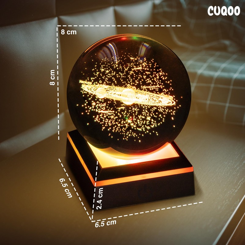 CUQOO 3D Solar System Crystal Ball with LED Colourful Lighting β 8cm Planets Model Decor Science Astronomy Gift | Engraved Universe Planet Sphere Easter Home Decorations for Children