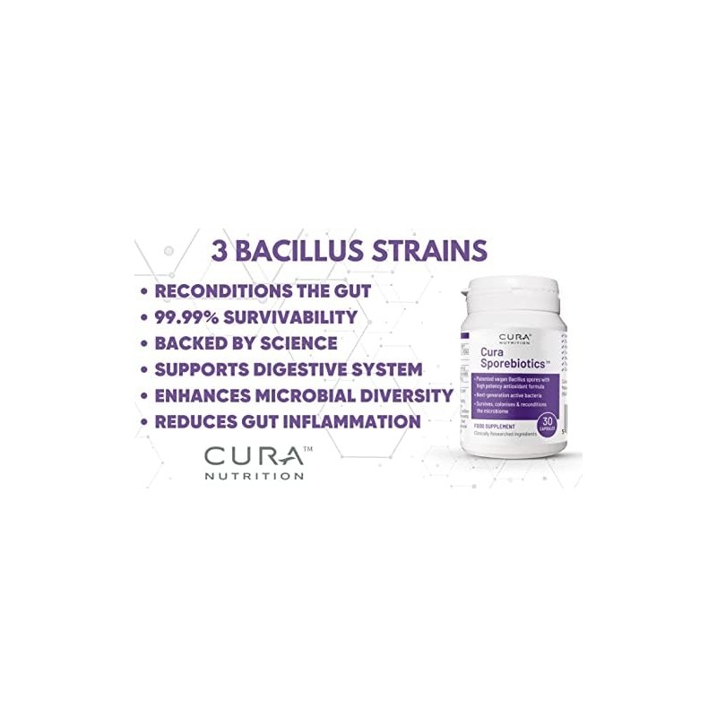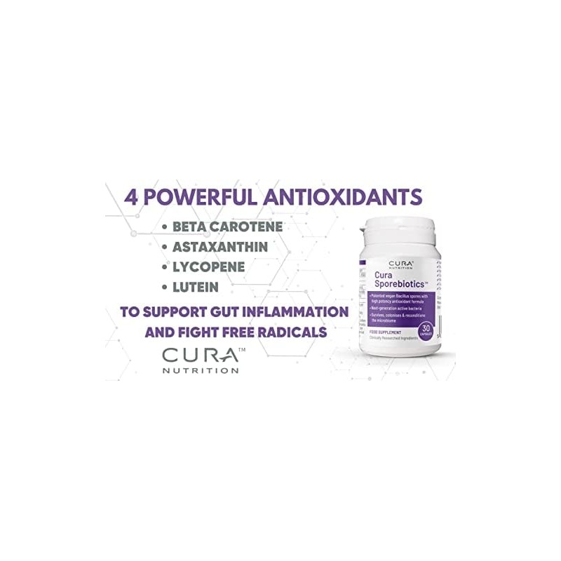 Cura Nutrition CURA Nutrition - Sporebiotics (30 Capsules) | Bacillus Spore Probiotic Supplements with Carotenoid Antioxidants, Spore Probiotics, Gut Health Supplement, Vegan, Vegetarian, Paleo & Keto Friendly
