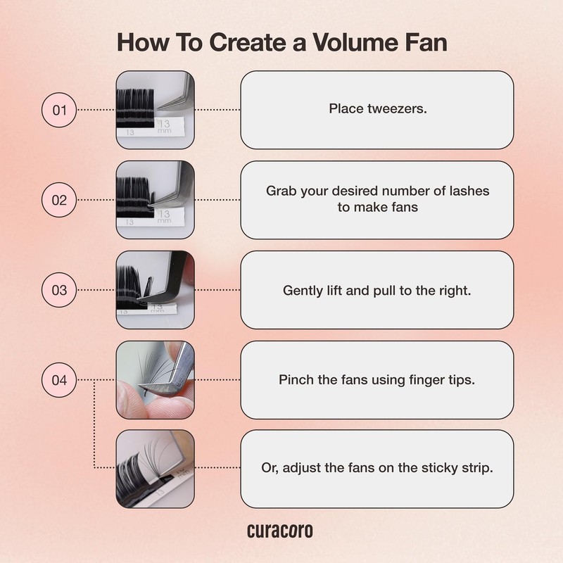 Elevate Your Lash Artistry with Curacoro Easy Fan Extensions Achieve expertly crafted volume sets with these premium quality, self-fanning lash extensions. Curacoro's meticulous standards ensure consistent, beautiful fans with a super matte black finish. Available in a range of thicknesses, curls, and lengths to perfectly customize your clients' looks. Experience the Curacoro difference - lash techs' preferred choice.