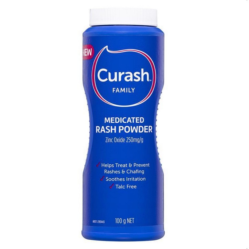 Curash™ Family Medicated Rash Powder is a soft, fine powder formulated with Zinc Oxide to help soothe, treat and prevent prickly heat, chafed skin, heat rash, excess perspiration and sweaty feet.