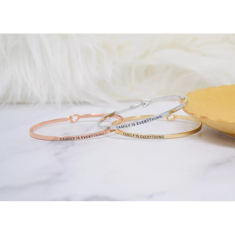 Curated Trinkets FAMILY IS EVERYTHING | Inspired Message Engraved Simple Bangle | SILVER