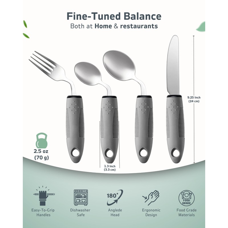 • OPTIMALLY WEIGHTED (3 oz) UTENSILS: Adaptive weighted silverware provides ideal balance and stability, effectively reducing tremors without causing fatigue. Enhances control, comfort, and ease of eating.