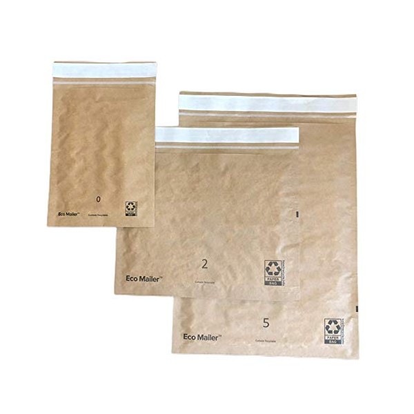 Curbside Recyclable Padded Mailer Envelopes Eco Friendly with Self Seal Tear Strip. Combo Pack-6"x8", 11"x8" and 14"x8" (10)
