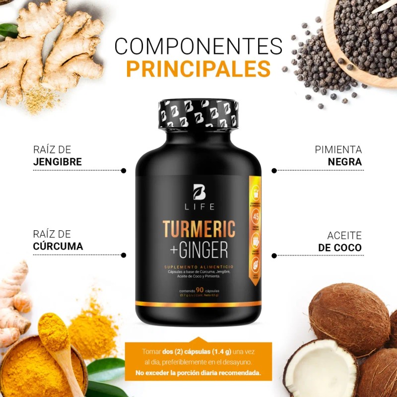 Beneficios Clave de Cúrcuma + Jengibre B Life