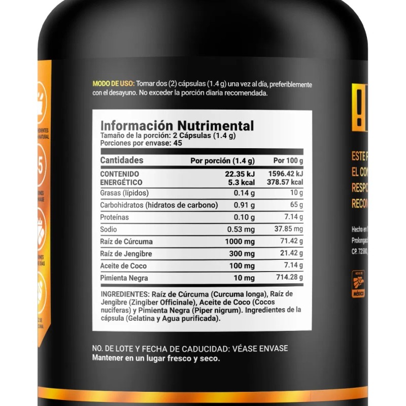 Cúrcuma, Jengibre, Aceite de Coco y Pimienta Negra: una combinación poderosa en cada cápsula. 🥥