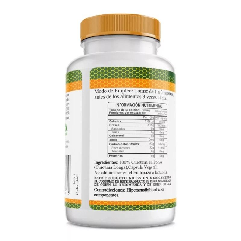 Curcuma Pura Orgánica Premium - 100 Cápsulas, 500mg, Sabor Natural
