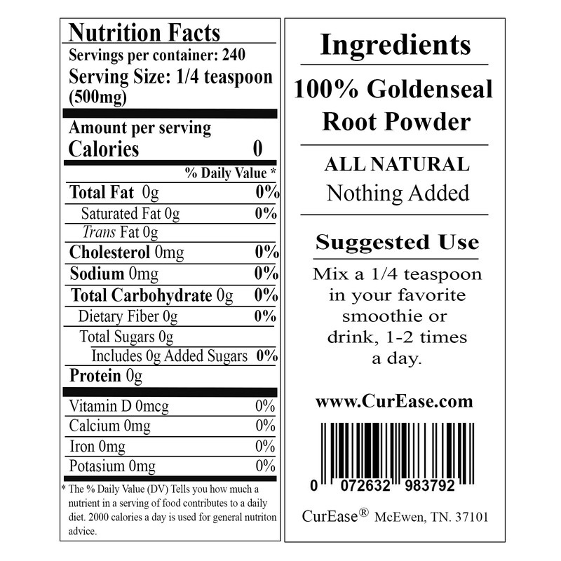 CurEase Goldenseal Root Powder 4.2 oz / 240 Servings