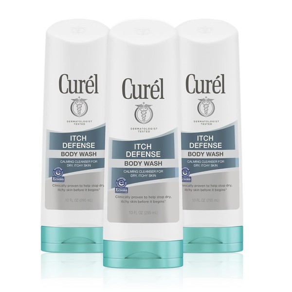 🌟 💄 Curél Itch Defense Calming Body Wash, Soap-free Gentle Formula, for Dry, Itchy Skin, with Hydrating Jojoba and Olive Oil, 10 Ounce (Pack of 3) 💄 🌟