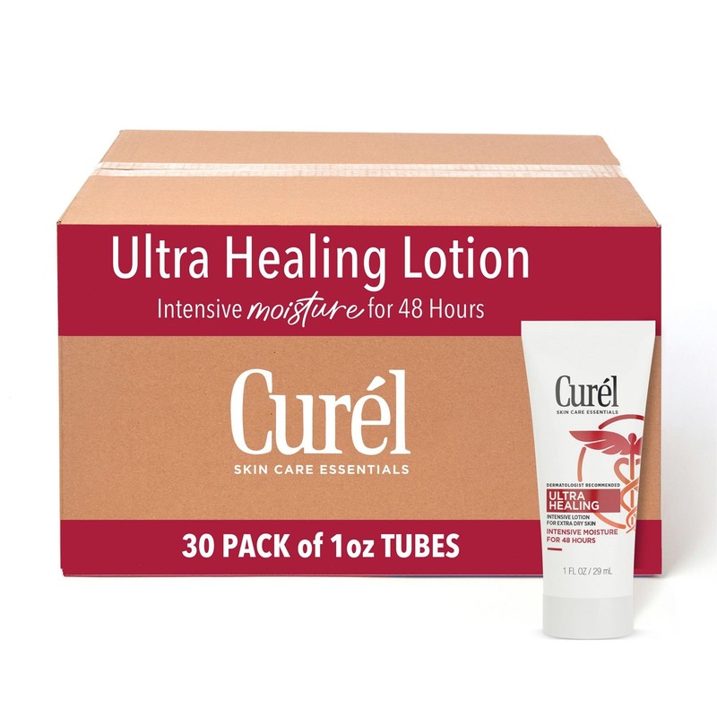 Curel Ultra Healing Intensive Fragrance-Free Lotion For Extra-Dry Skin, Dermatologist Recommended, Ideal for Sensitive Skin, Cruelty Free, Paraben Free, 1 Oz, Pack of 30