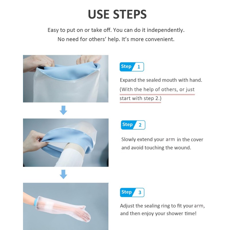 - APPLICABLE TYPES AND SCENARIOS: It is suitable for the protection of casts, bandages, rashes, abrasions, burns, cuts, wounds. Ideal for adults recovering from arm surgeries or injuries.