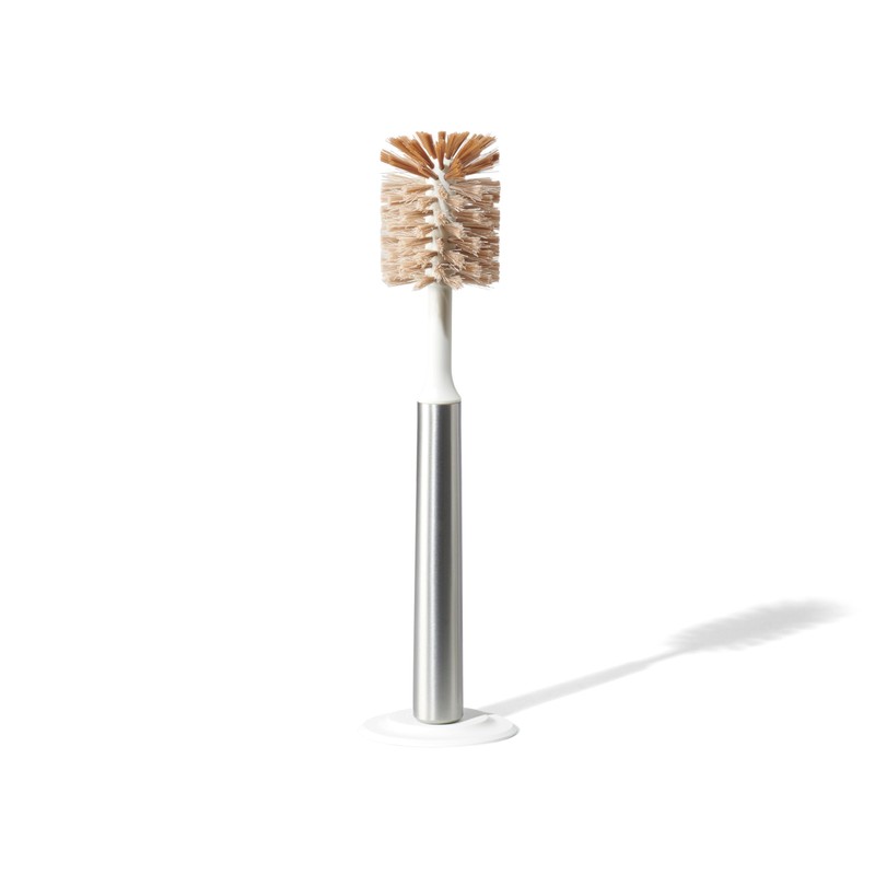- Magnetized bottle brush stands upright for ease of use, thorough drying and stunning kitchen décor