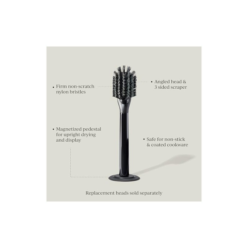 - Magnetized dish scrub brush stands upright for ease of use, thorough drying and stunning kitchen décor