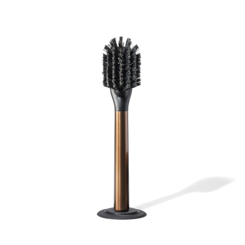 Curio Home Goods Ionic Dish Brush, Magnetized to Stand Upright, Stainless Steel with Replaceable Head, Bronze