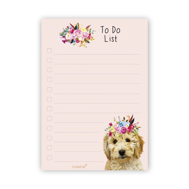 Curled Up Cockapoo A6 To Do Notepad – 50 Tear Off Pages - Cockapoo Lover Gift – To Do List – Notes – Organiser – Dog Lover Memo Desk Pad