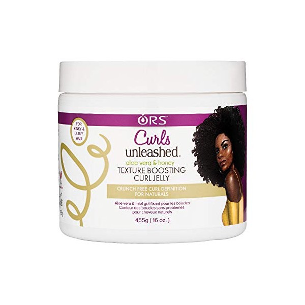 The ORS Curls Unleashed Aloe Vera & Honey Curl Boosting Jelly is blended with aloe vera, honey, and other ingredients to help define your curls without crunch. Cocktail with Curl Defining Creme for an added boost of Add Shine. This super blend of moisturizing Aloe Vera & Honey defines & elongates your curls without the crunch. Cocktail with Curl Defining Crème or Leave-in conditioner for an added boost of moisture.