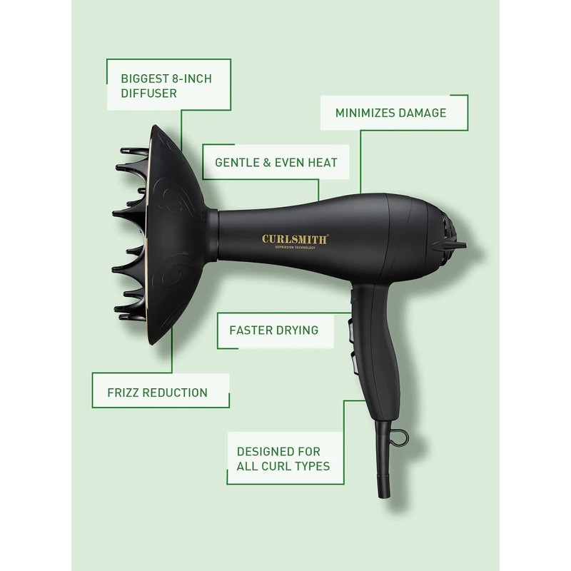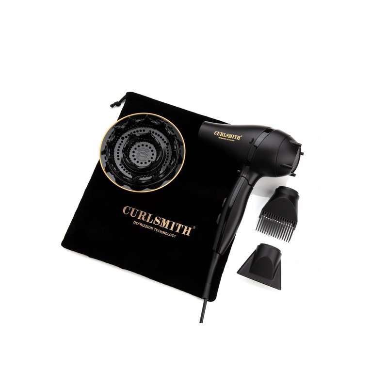 Curlsmith - Defrizzion Travel Hair Dryer with Large Diffuser, for Curly Hair, Reduce Frizz, 3 Speeds, 3 Heat Settings, Infared, Ceramic Heat for Fast Drying