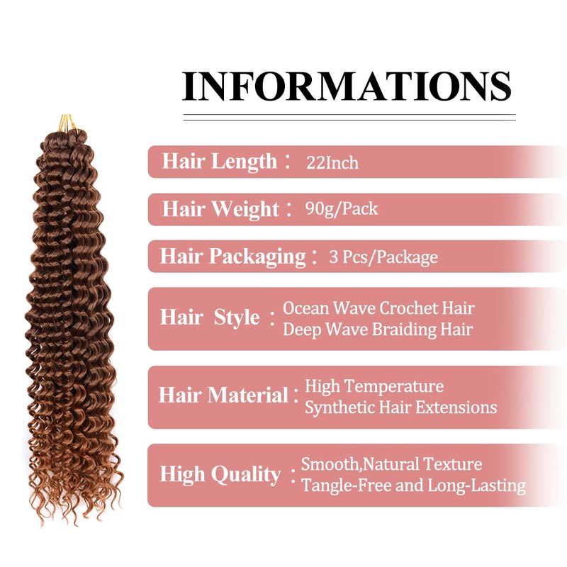 - Easy To Install:Ocean Wave Crochet Hair Is Easy To Separate And Wear with A Crochet, Can Be Easily Use For Different Styles According To Your Preference, Such As Boho Box Braids,Goddess Box Hair, Knotless Box Hair Or Curly Hair Styles.There Is various Colors Available For The Wavy Braiding Hair, Which Allow You To Get Lots Of Creative Looks.