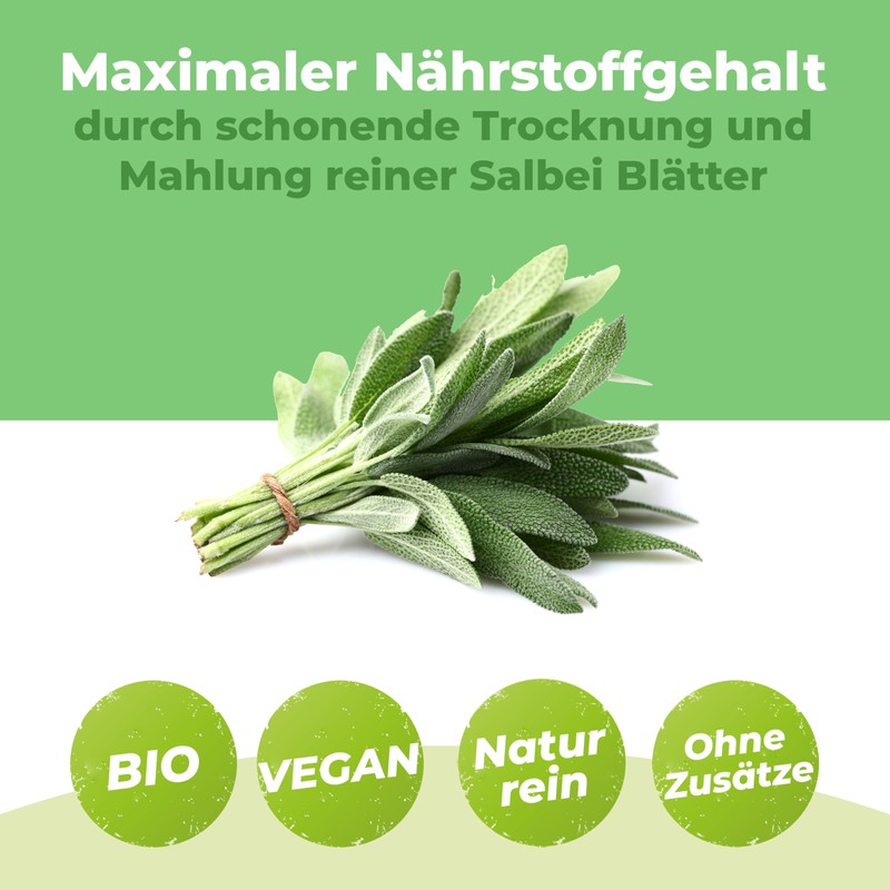 - Highest purity – 100% natural sage leaves (Salvia officinalis) with valuable nutrients thanks to gentle production and drying from pure sage leaves