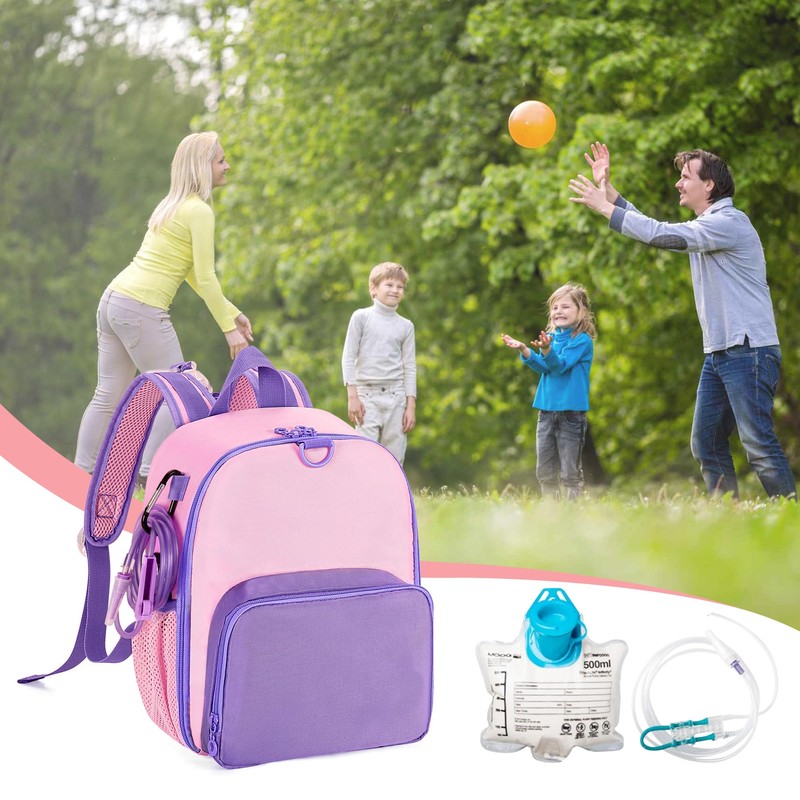 - FEEDING TUBE BACKPACK: Main compartment is lined with aluminum film, which is easier to clean and offers a optimal environment for storing nutrition bag. 1 buckle strap can hang a 500ml enteral nutrition bag and middle hook and loop strap can fix the nutrition bag to prevent shaking. The upper right hook and loop strap can hang the overlong tube to avoid entanglement.