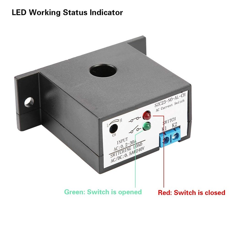 Current Meter Switch, 0.2-30A SZC23-NO-AL-CH AC Current Sensor Switch, Normally Open Current Sensor Control Switch, Adjustable Current Sensor Switch, IP30 Waterproof