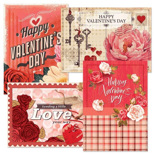 Current Vintage Wishes Valentine's Day Greeting Cards - Set of 8 (4 Designs), 5 x 7 Inches, Seasonal, Sentiments Inside, Envelopes Included