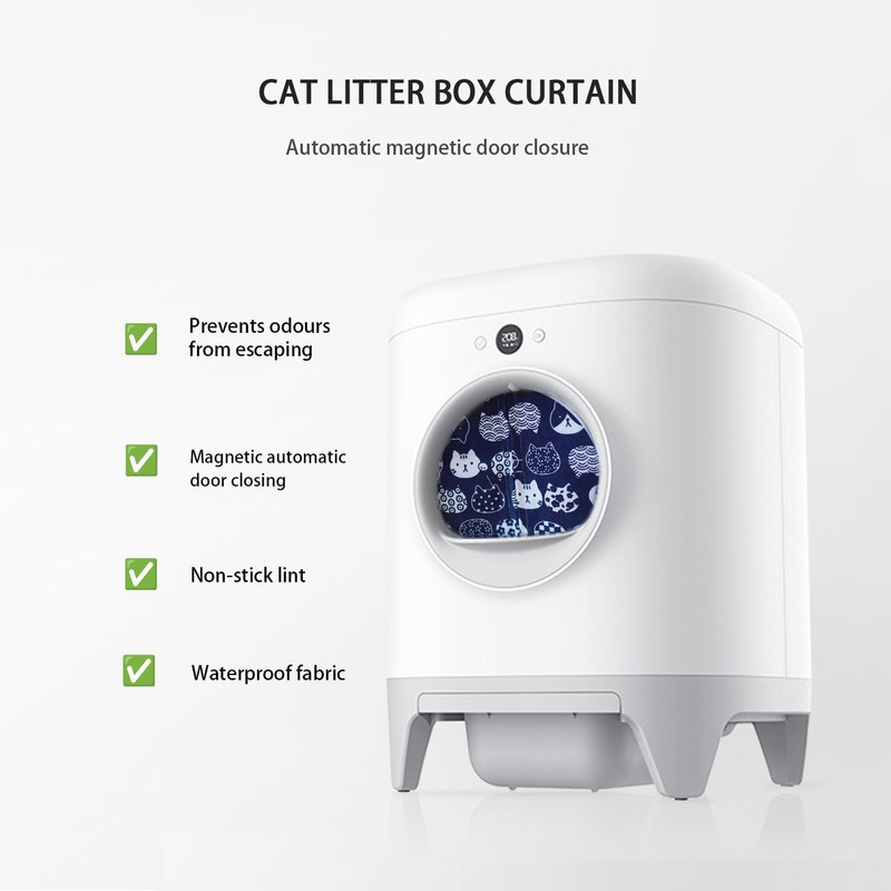 Curtain for Self Cleaning Cat Litter Box,Reduces Cat Litter Bounce, Stops Odors from The Litter Box Self Cleaning (Blue White, Round)
