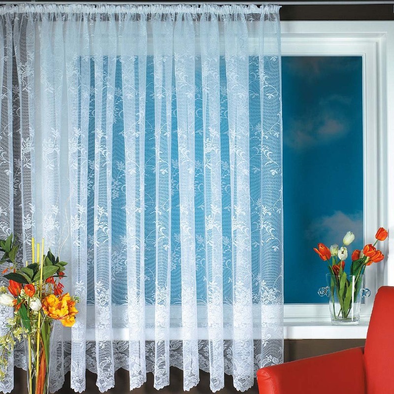 Curtain Jacquard Universal Ribbon Lace Look Curtain Floral Pattern White, Selection: 300 x 175 cm, Design: Monique