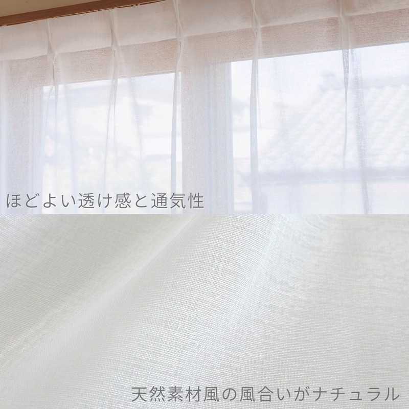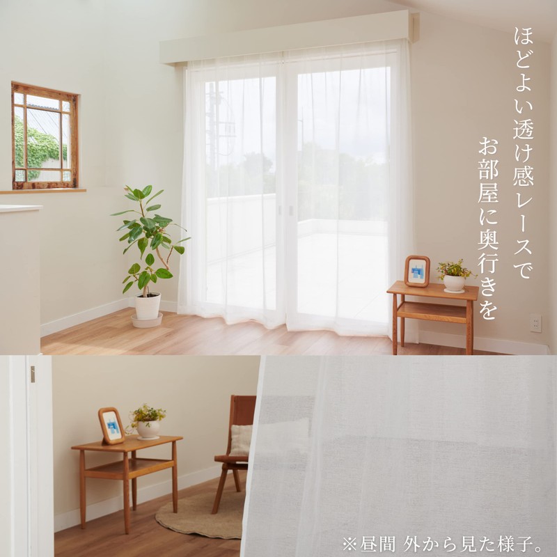 Curtain Laboratory, Gauze-Style Natural Lace, White, Width 39.4 x Length 42.5 inches (100 x 108 cm), Set of 2, UV Protection, Washable, Adjuster with Hook, Natural, Simple, Plain