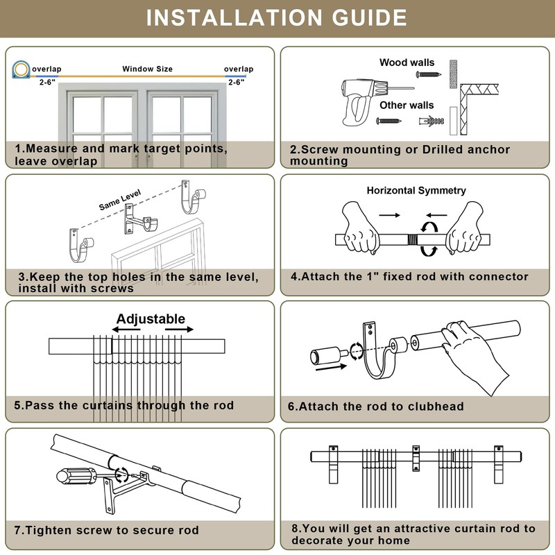 - Adjustable Length with Seamless Assembly: Easily customize the length of your drapery rods using the threaded inner tube connection system. Multiple 16-inch sections can be smoothly joined into a continuous rod without visible gaps, allowing flexible sizing and smooth curtain operation