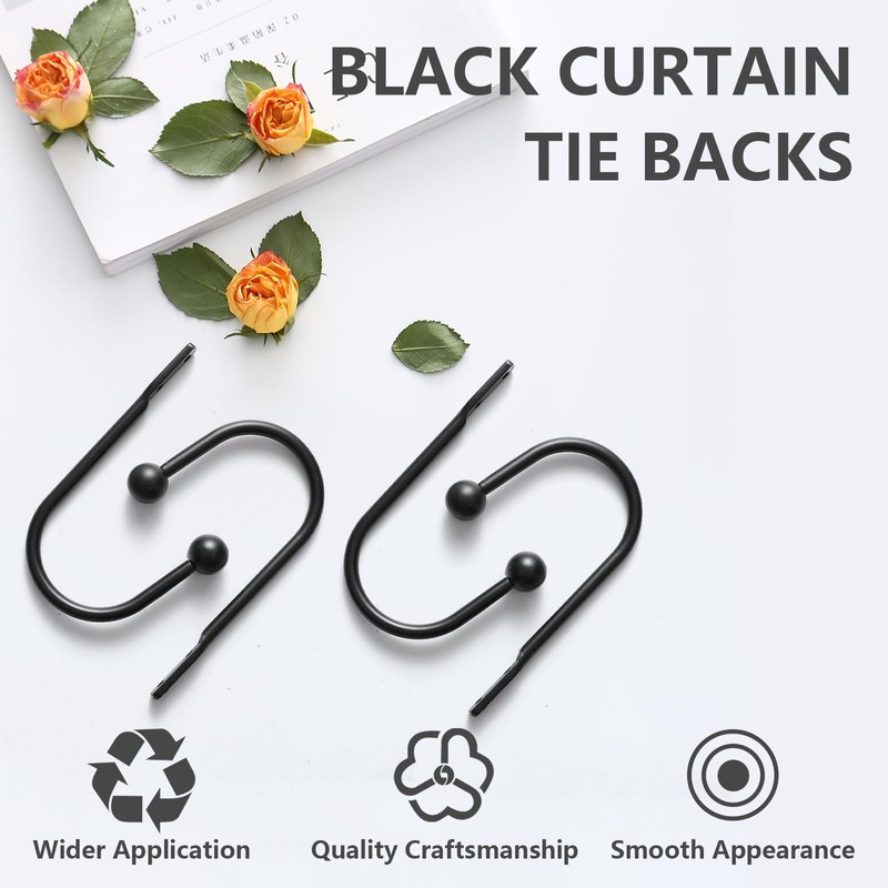 Curtain Tie Backs Hooks 4 Pack Black Curtain Holdbacks Elegant Curtain Tiebacks Metal Tie Back Hooks for Curtains with Screws
