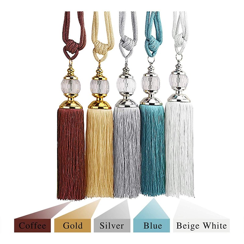 - ➤Easy To Use & No Drill: No tools and assembly required. You can directly tie crystal curtain tiebacks in curtains or use with hook. Just use curtain holdbacks for drapes in the way you like and there are 5 colors to choose from: Beige White/ Gold/ Blue/ Sillver/ Coffee to fully meet your daily need, bringing much convenience.