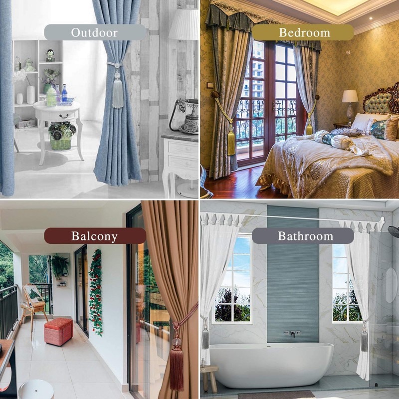 - ➤Suitable for All Curtains: The curtain holdbacks silver length is 63 cm/ 24.8 in. You can adjust the rope lenth, perfect suitable for all sheer curtains and thick blackout curtains, not easy to fall off; In your living rooms, bedrooms, bathrooms, dinning rooms, offices and studios; anywhere in indoor and outdoor curtain tiebacks.