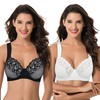 Curve Muse Women's Plus Size Unlined Underwire Lace Bra with Cushion Straps- Black, White- Size:40DD