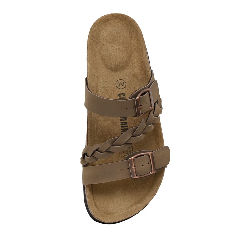 CUSHIONAIRE Women's Cork Footbed Sandal - Comfortable, Adjustable Straps, Arch Support, Wide Widths Available, Boho Chic Summer Slides, Brown 8.5