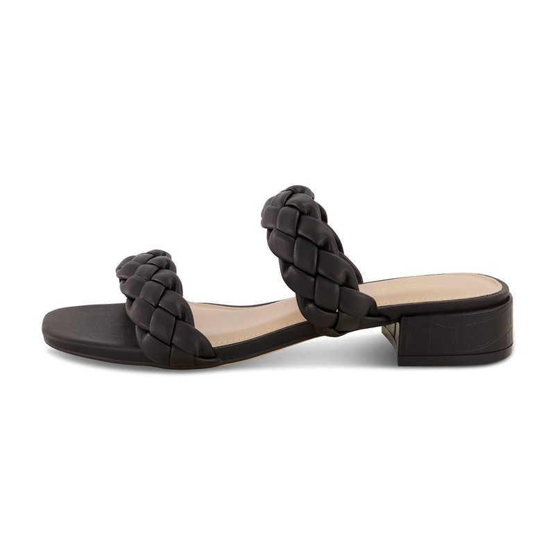 CUSHIONAIRE Women's Nan two band braided low block heel slide sandal +Memory Foam and Wide Widths Available, Black, 7 Wide