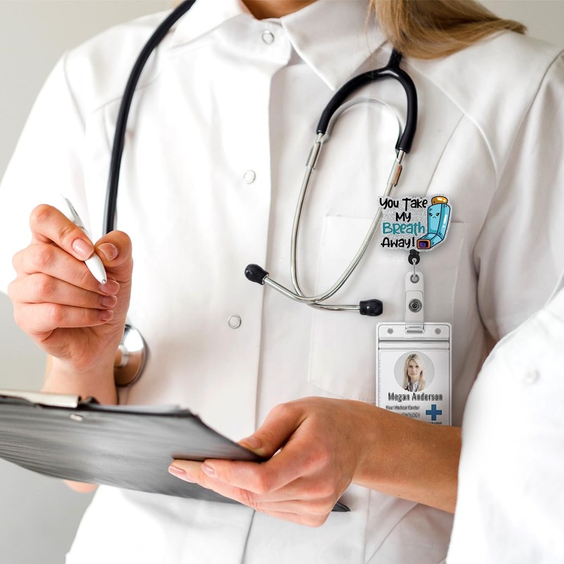 Cusrtyh,You Take My Breath Away,Funny Inhaler Retractable Badge Reel,Gift for Lung Respiratory Therapist Nurse Doctor Student,Funny Badge Reels Retractable