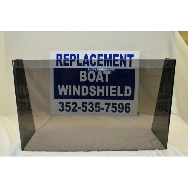 Boat windshield made of 1/4" premium tinted plexiglass. (Thicker and more durable than the competition). 16" High by 21" inside dimension (21 1/2" outside dimensions) wide with 6" side flankers. Mounts around the face of a console. Your console needs to be an 1/8" to 1/4" smaller than the ID measurement for proper fit. No holes drilled so you can match your existing ones up. Confirm your corner radius are as shown in the photos.