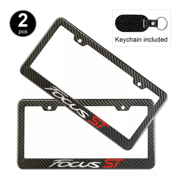2pcs Ford Focus St license plate frame carbon fiber look style plastic.