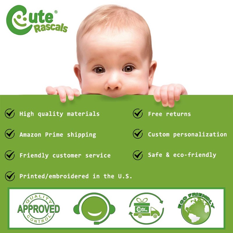 Our designs are professionally printed with state-of-the-art equipment guaranteed not to fade or crack, with no bleed through inside to protect baby's soft skin! Our prints will continue to feel and look great even after many washes for many years. We have more than 12 years of experience in the printing industry to offer you stunning detail and rich lifelike colors. All prints are carefully made in our lab in Tampa, Florida.