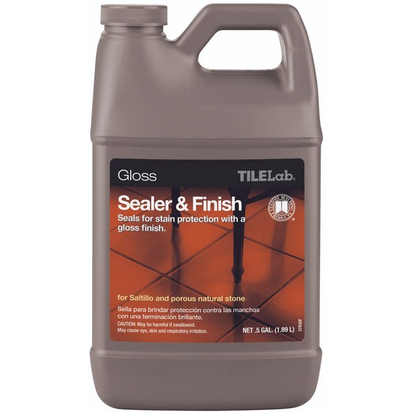 1/2 gallon, gloss sealer & finish, a clear, protective, acrylic high gloss finish that enhances color of unglazed tile & unpolished stone, Saltillo & clay tiles become more durable, use indoors.