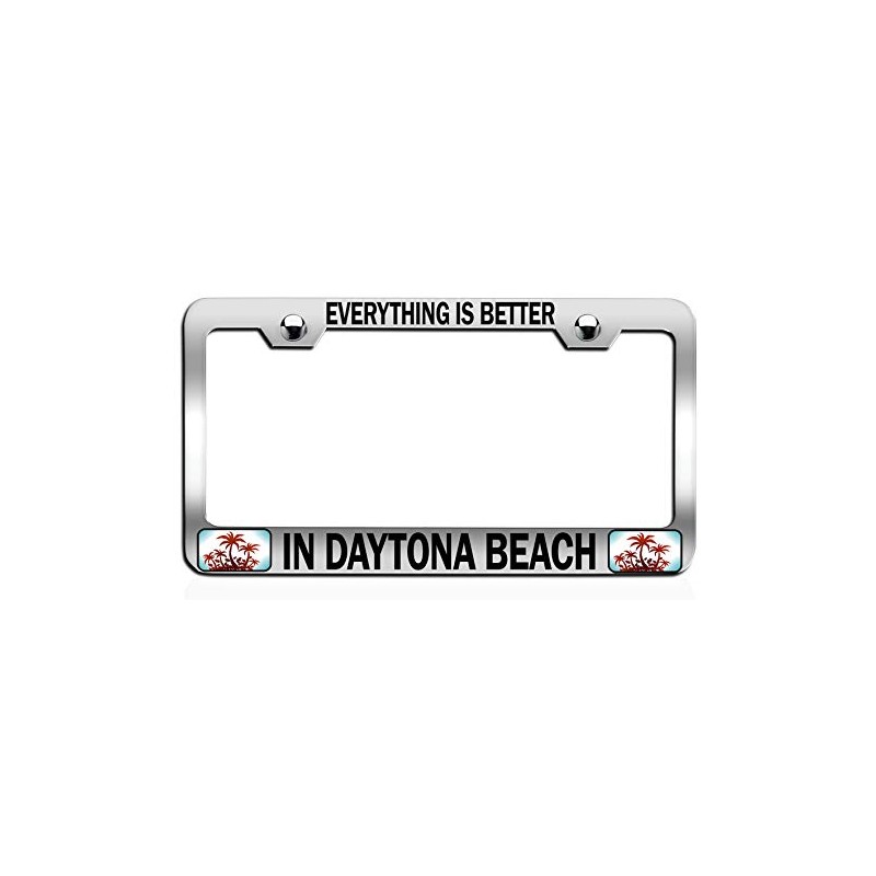 Custom Brother - Everything is Better in Daytona Beach Beach Summer Surf Surfing Chrome Steel Auto SUV License Plate Frame License Tag Holder, B96
