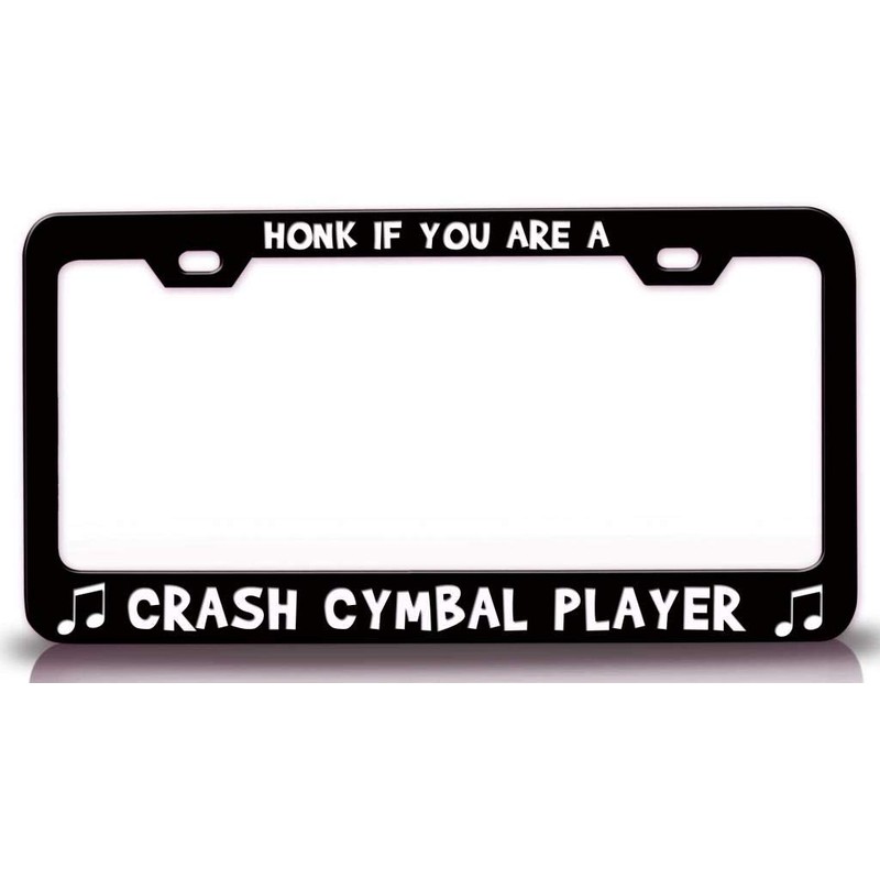 Custom Brother - HONK IF You are A Crash CYMBAL Player with Music Note Metal Car SUV Truck License Plate Frame Bl f29