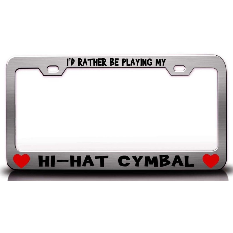 Custom Brother - I'd Rather BE Playing My HI HAT CYMBAL w/Heart Metal Car SUV Truck License Plate Frame Ch w23