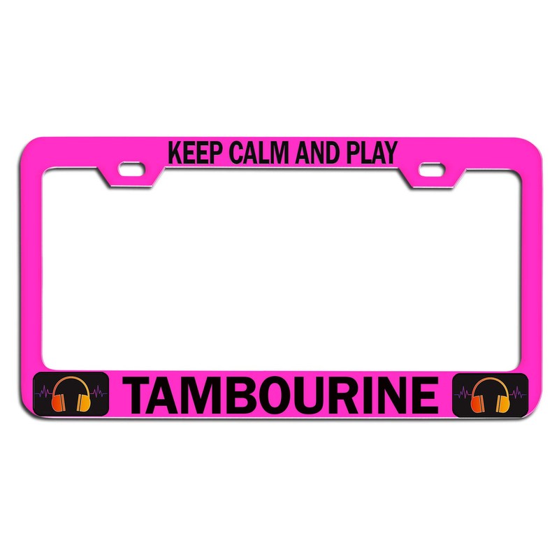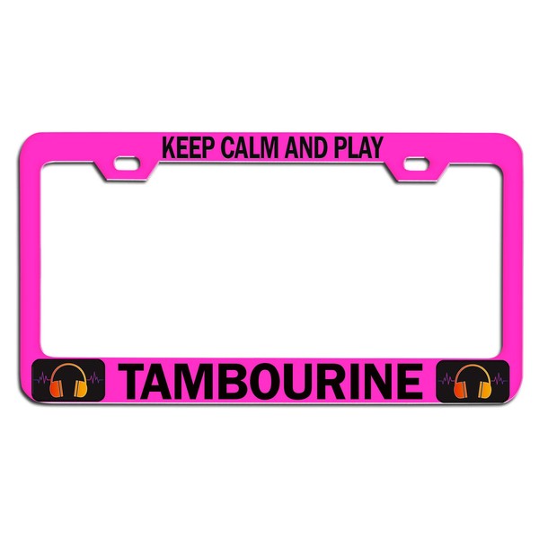 Custom Brother - Keep Calm and Play Tambourine Pink Steel Auto SUV License Plate Frame License Tag Holder, E3