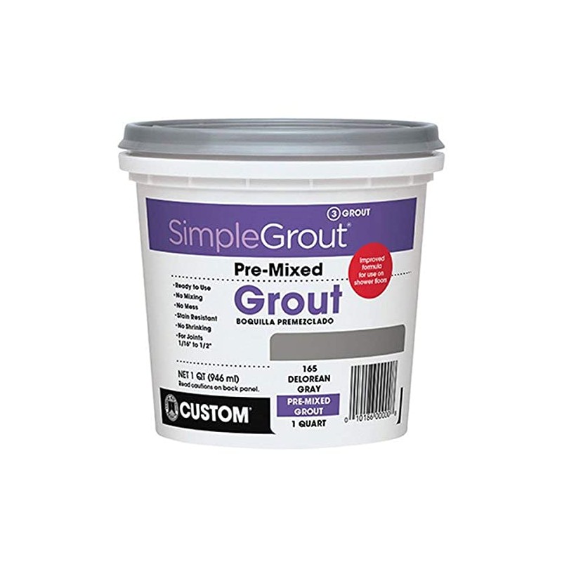 Custom simple premium grout, premixed and ready to spread. For grout joints from 1/16-Inch wide to 1/2-Inch wide. Stain, shrink and crack resistant. Excellent for grout restoration, simply apply over existing grout. Excellent water resistance, use on shower walls and countertops. Installs like conventional sanded grouts. Average coverage: 4.25-Inch wall tile 0.25-Inch thick with a 1/16-Inch grout joint, 34-Square-Feet per quart. Average coverage: 12-by-12-Inch tile 3/8-Inch thick with a 1/4-Inch grout joint 29-Square-Feet per quart. Color: 381 bright white