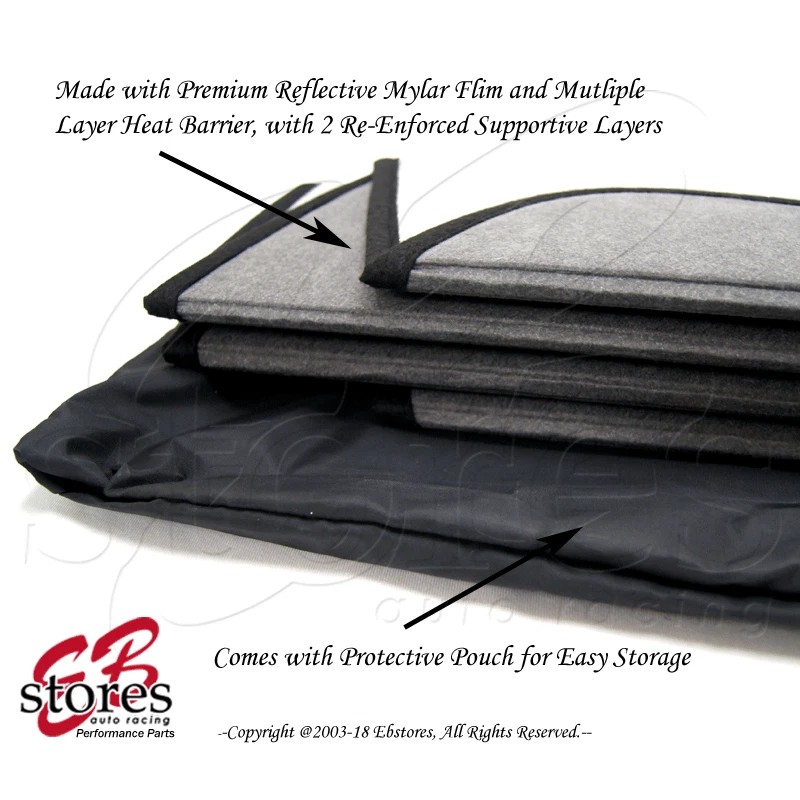 - Made with Reflective Mylar Film and Multiple Layer Heat Barrier, with Supporting Boards to Prevent the Sunshade from Anti-Droop / Anti-Sag